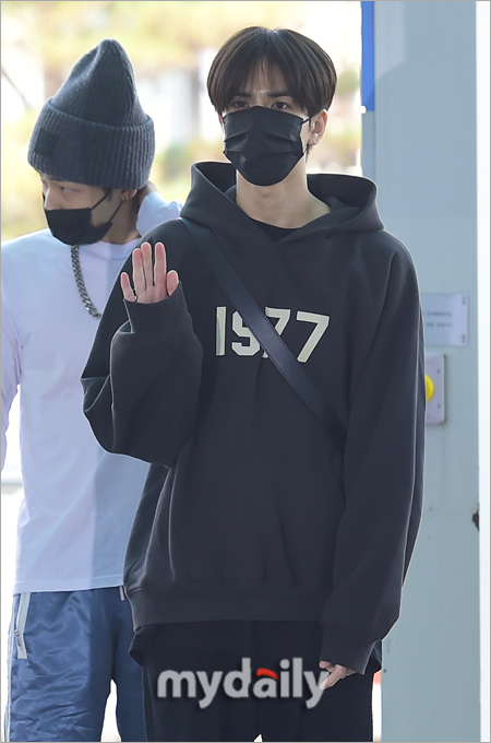 · [MD포토] 더보이즈 영훈 '팬에게 손인사'